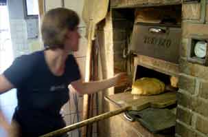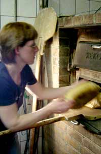 Zum Auskühlen werden die Laibe wieder auf das Regal in der Backstube gelegt.