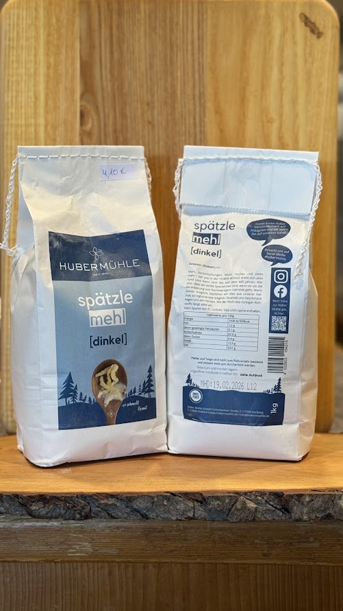 Sie erhalten Dinkelmehl für hausgemachte Spätzle. Der Teig hält gut zusammen und bringt kräftigen Geschmack in Ihre Küche. Ideal für klassische und moderne Gerichte.