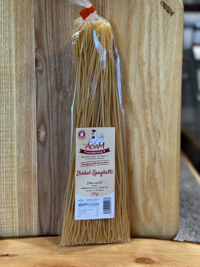 Diese Spaghetti bestehen aus Dinkelgrieß und frischen Eiern.