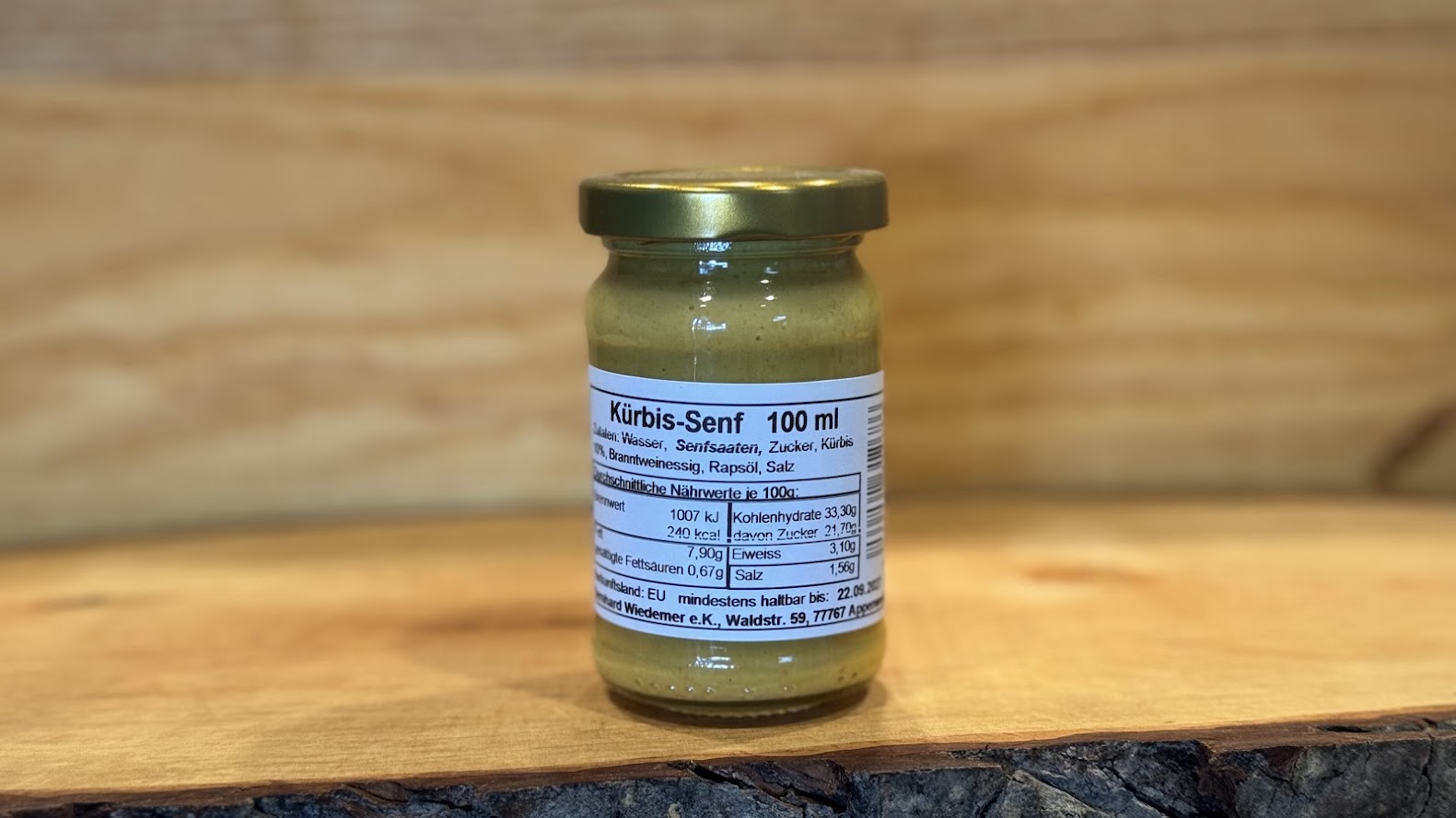 Dieser Kürbis-Senf verbindet milde Schärfe mit einer leicht fruchtigen Note. Er passt zu Käse, Grillgerichten und herbstlichen Speisen.