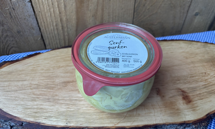 Senfgurken sind eingelegte Gurkenstücke in einer süß-sauren Senfcreme. Sie schmecken knackig, leicht süßlich und würzig.