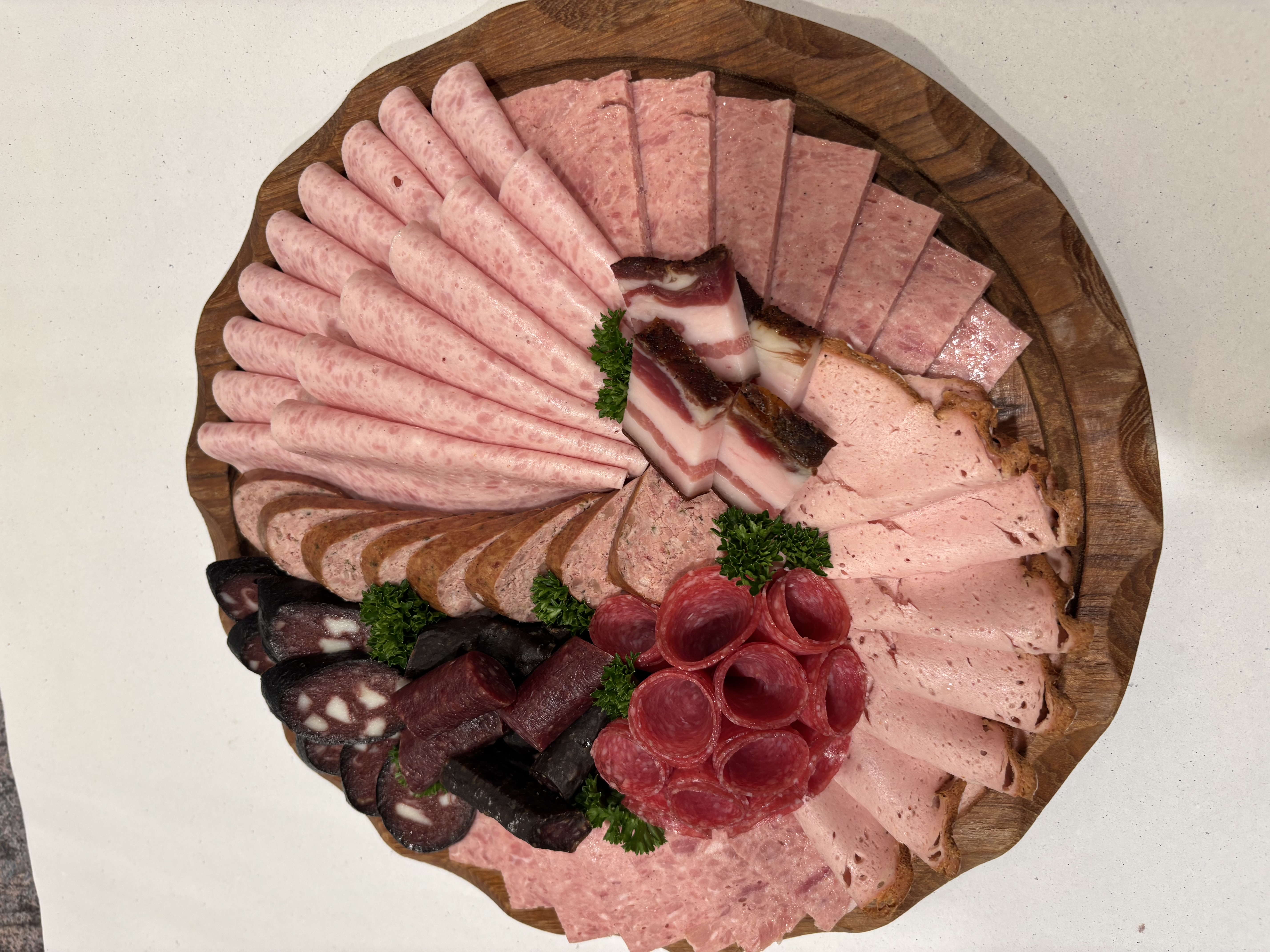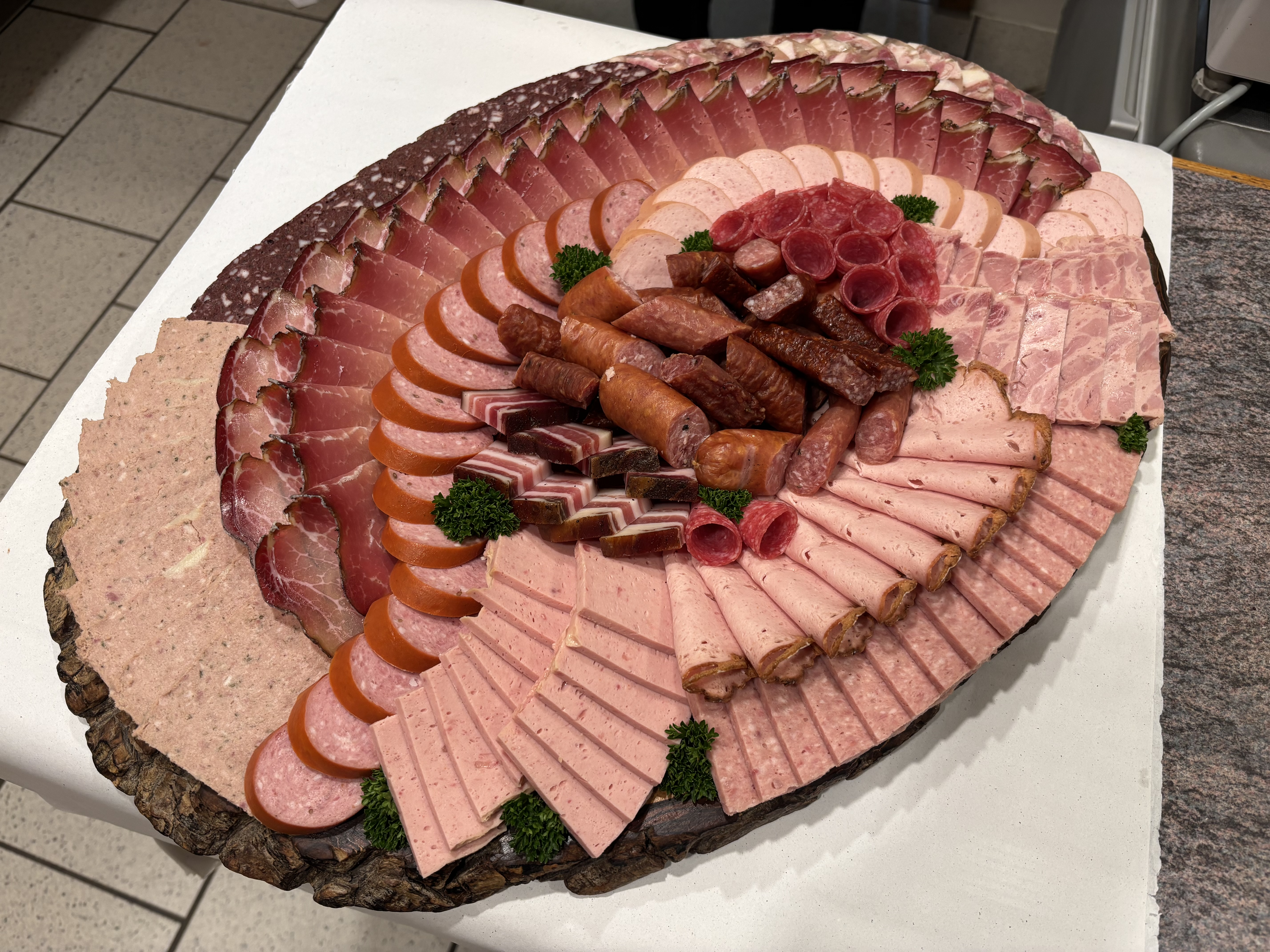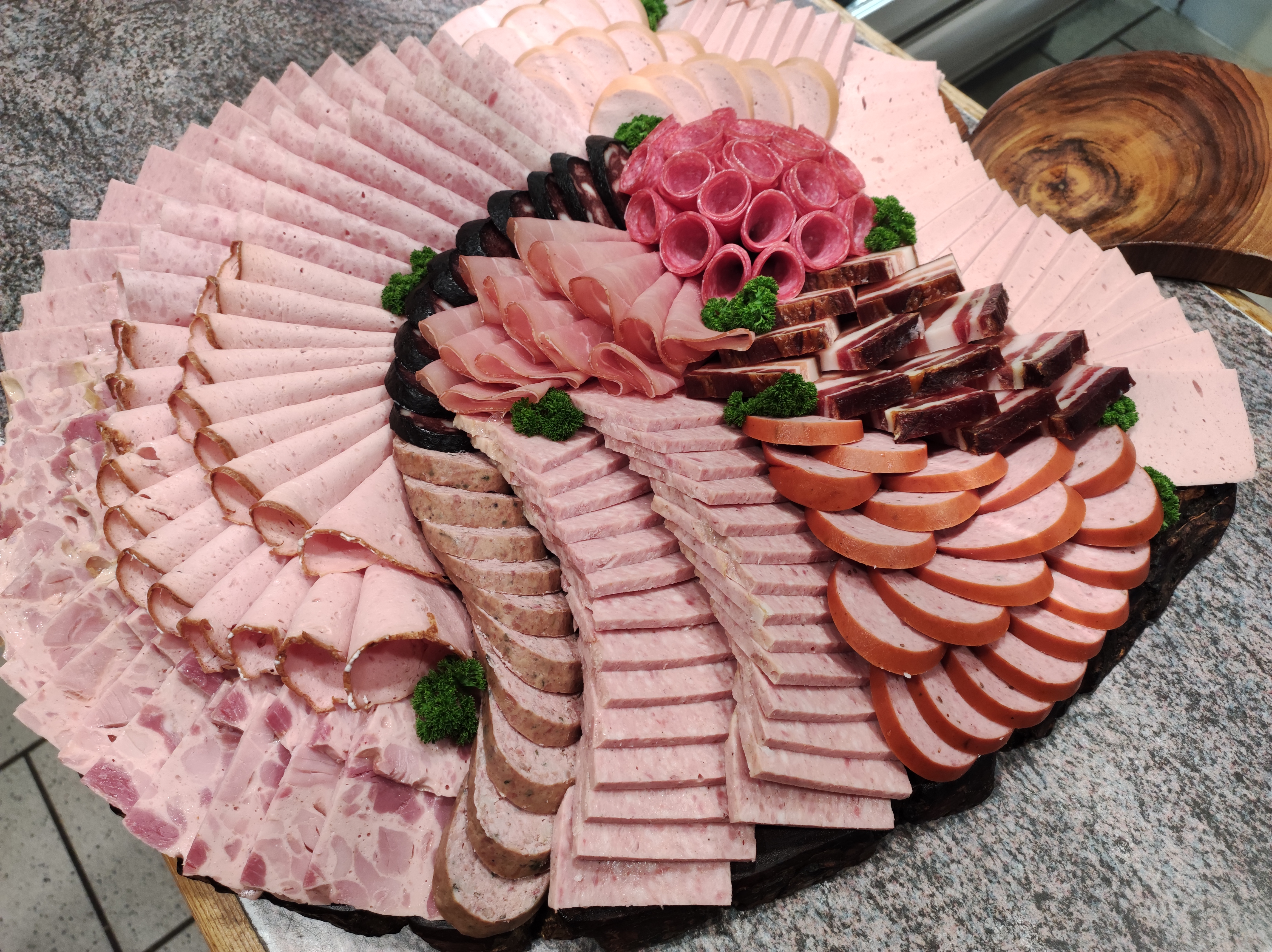 Für ihre Fest oder Freundestreffen zuhause - Ab Hof bieten wir Vesper- und Genussplatten unterschiedlichster Natur – von Hausmachervesper über leckere Braten bis hin zur Grillplatte. Bestellen Sie bitte rechtzeitig vor: