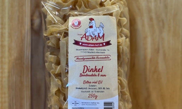 Diese Dinkel-Bandnudeln liefern einen harmonischen Geschmack und einen ausgewogenen Biss. Der hohe Ei-Anteil sorgt für eine glatte Struktur und eine warme, goldene Farbe.