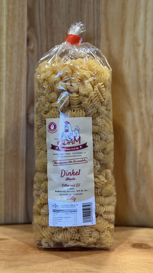 Diese Dinkel-Möpsle bestehen aus Dinkelgrieß und einem hohen Anteil an Ei. Sie liefern einen festen Biss und einen leicht nussigen Geschmack.
